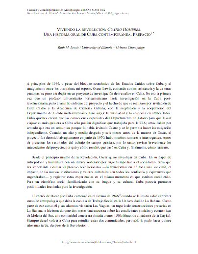 Lewis, Ruth M. (1980). Viviendo la Revolución: Cuatro hombres. Una historia oral de Cuba contemporánea. Prefacio. México: Joaquín Mortiz